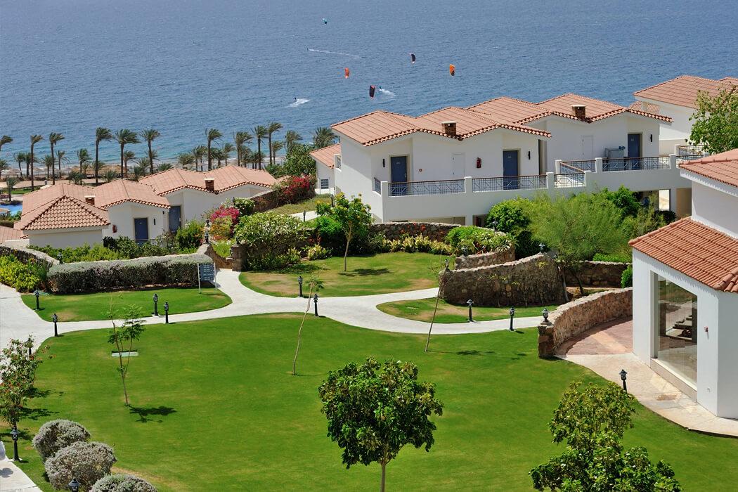 Ecotel Dahab Bay View Resort je klidný a elegantní hotel zasazený mezi majestátními horami Sinaje a průzračnými vodami Akabského zálivu. Hotel je ideální volbou pro ty, kteří hledají odpočinek mimo rušná letoviska a ocení klid, přírodu a panoramatické výhledy. Resort nabízí soukromou pláž, dva venkovní bazény (jeden z nich vyhřívaný v zimě), dětský bazén, tenisový kurt, hřiště na plážový volejbal i plážový tenis. Zajímavostí je také ekologická farma s citrusovým sadem přímo v areálu hotelu. Hotel byl otevřen v roce 2009 a každoročně prochází pravidelnými kosmetickými úpravami. Skládá se z hlavní budovy a komplexu dvoupatrových budov a nabízí celkem 217 pokojů.